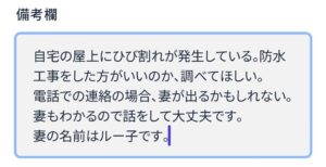 他にも連絡方法など、サクラルーフにあらかじめ伝えておきたいことがあれば、そちらもご記入ください。