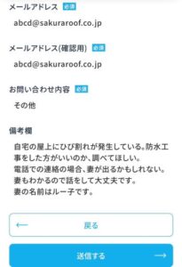 登録したらすぐにサクラルーフへ連絡が可能です。
